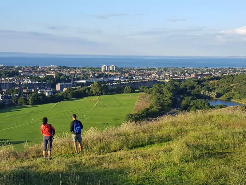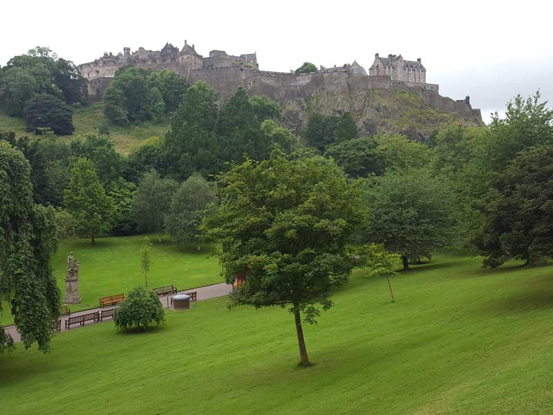 Der schönste Aussichtspunkt ist der Calton Hill. Von dort aus eröffnet sich der Blick auf das imposante und mächtige Edinburgh Castle, den sattgrünen Princes Street Garden, die schnurgerade Flaniermeile Princes Street, die klassizistische Architektur und das Häusermeer bis hin zum blauen Wasser des Firth of Forth.