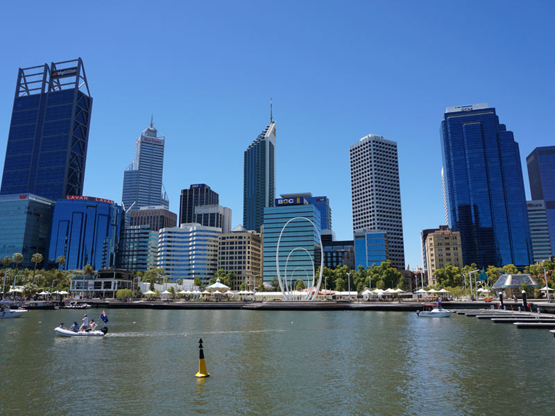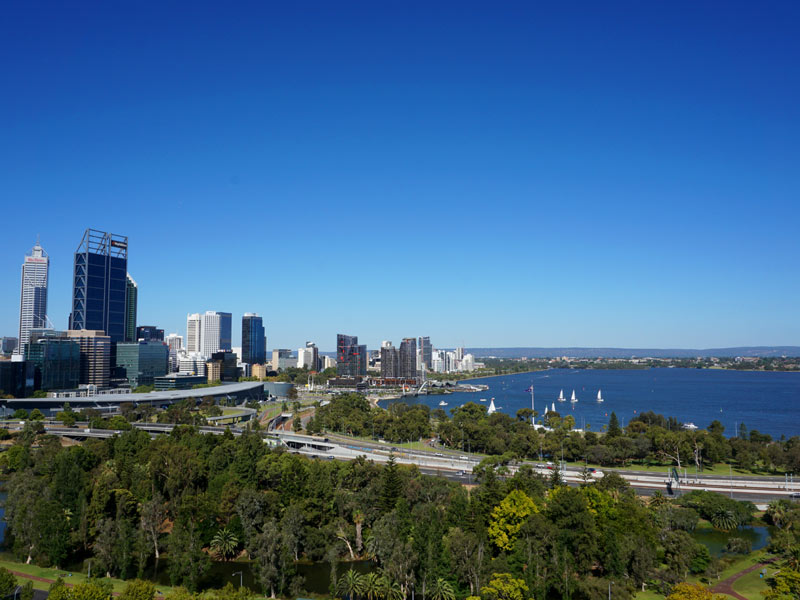 Das Wetter ist fantastisch, die Strände sind sauber und nicht überfüllt. Die kostenlosen CAT Busse bringen die Besucher durch die Innenstadt, wo es viele Sehenswürdigkeiten, wie die Perth Mint (die älteste und in Betrieb befindliche Münzprägeanstalt von Australien), den Swan Bells Tower (Turm mit einem Glockenspiel aus 18 historischen Glocken) und die Art Gallery of Western Australia zu sehen gibt. Der Kings Park, die “Seele” der Stadt, beherbergt den Botanischen Garten und lädt zum Entspannen ein. Lohnenswert sind auch ein Spaziergang auf dem Baumkronenpfad, auf dem man einen einmaligen Ausblick über die Stadt geniessen kann.