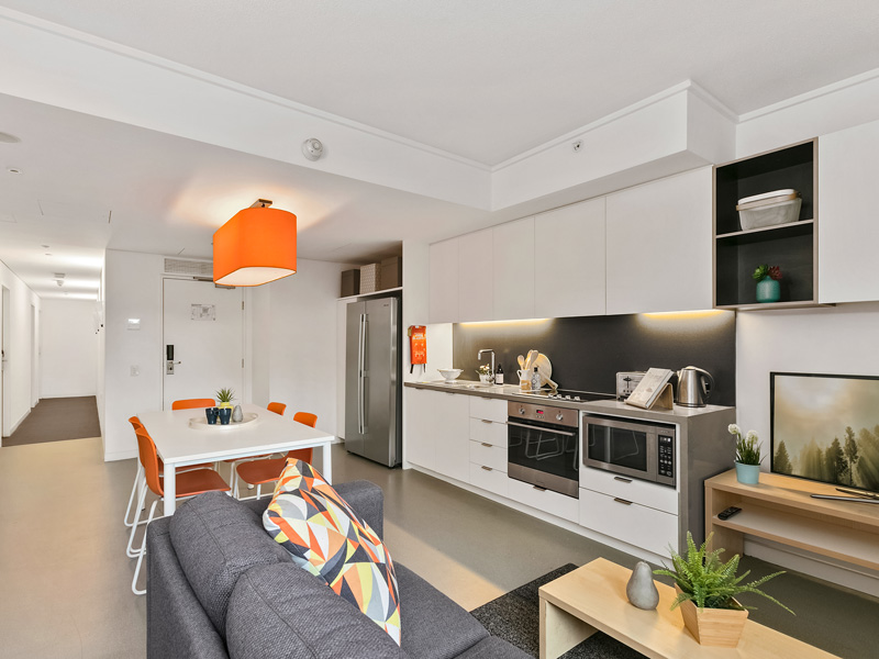 Moderne Studentenresidenz in Chatswood, einem beliebten und lebendigen Stadtteil von Sydney. Die Sprachschule ist mit öffentlichen Verkehrsmitteln in etwa 30-40 Minuten zu erreichen. Zur Ausstattung der Residenz zählen unter anderem kosenloses WiFi, Aufenthaltsräume, Student Lounge und Fitnessraum. Einzelzimmer mit eigenem Bad. Gemeinschaftsküche und Aufenthaltsraum. Bettwäsche und Handtücher werden gestellt. Mindestaufenthalt: 4 Wochen. Bei der Ankunft ist eine Kaution zu hinterlegen: AUD 500.