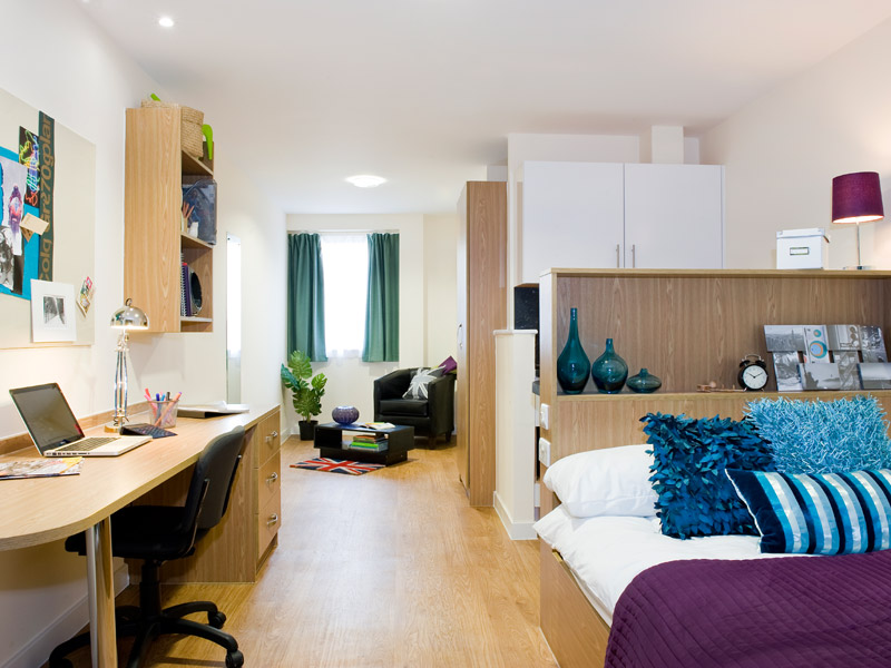 Studentenresidenz neben der Schule. Unterkunft im Doppelzimmer mit dem Reisepartner oder einem weiteren Teilnehmer oder im Einzelzimmer, jeweils mit Bad/Dusche. WLAN. Selbstverpflegung. TV- und Aufenthaltsraum sowie Restaurant im Haus, Cafeteria (nur zu Unterrichtszeiten geöffnet) neben Schule auf Campus. Bettwäsche wird gestellt, Handtücher sind mitzubringen. 1/2 Doppelzimmer ist für Alleinreisende buchbar. Mindestalter 18 Jahre. Vor Ort ist eine Kaution von GBP 200 per Kreditkarte zu hinterlegen sowie ein Schlüsselpfand von GBP 20.