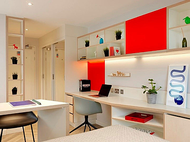 Zentral gelegene Residenz, ca. 20 Gehminuten von der Sprachschule entfernt. Unterkunft im Studio mit eigenem Bad und Küchenzeile. Selbstverpflegung. WLAN inklusive. In der Residenz gibt es unter anderem einen Fitnessraum, Gemeinschaftsbereiche im Innen- und Aussenbereich und Studierzimmer. Es können Fahrräder gemietet und untergestellt werden. Waschmöglichkeit vorhanden (Gebühr). Handtücher und Bettwäsche werden gestellt. Buchbar ab 18 Jahren.