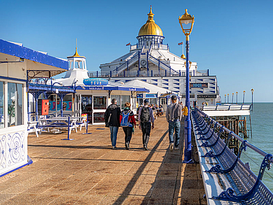 Wenn man an Badeorte in England denkt, ist Brighton unweigerlich der erste Name, der einem in den Sinn kommt – Eastbourne kann da jedoch allemal mithalten. Durch die Lage an der Südküste gilt Eastbourne als die Stadt mit den meisten Sonnenstunden im Jahr und trägt daher auch den Kosenamen "Sunshine Coast". Wer also seine Sprachreise mit einem Badeurlaub verbinden möchte, ist dort genau richtig. Von der Sprachschule aus kann man innerhalb von wenigen Gehminuten die Seepromenade mit anliegendem Strand erreichen und dort die Sonne und das Meer geniessen. Die 7 km lange berühmte Seepromenade ist von beeindruckender viktorianischer Architektur geprägt und deshalb Teil des vielfältigen Kulturangebots, welches die Stadt zu bieten hat. Während der viktorianischen Zeit begann Eastbourne, sich zu dem Kurort und beliebten Reiseziel zu entwickeln, das es heute ist. Neben der Promenade ist die Stadt für ihren Eastbourne Pier bekannt, der 1870 eröffnet wurde und mit seinen einladenden Cafés und Geschäften nicht nur ein beliebter Treffpunkt ist, sondern auch einen malerischen Ort für entspannte Spaziergänge bietet.