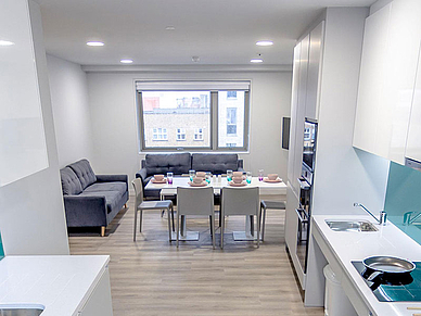 Zentrale Residenz, ca. 15 Gehminuten von der Sprachschule entfernt. Unterbringung in Apartmenteinheiten für bis zu 8 Teilnehmer. Du wohnst im Einzelzimmer mit eigenem Bad bei Selbstverpflegung. Küche und Wohnbereich zur gemeinsamen Nutzung. Handtücher und Bettwäsche werden gestellt. WLAN ist inklusive. In der Residenz gibt es weitere Gemeinschaftsbereiche sowie einen Fitnessraum, Fahrradkeller und Kinoraum. Mindestaufenthaltsdauer 2 Wochen. Buchbar ab 18 Jahren. Vor Ort ist eine Kaution in Höhe von € 100 zu hinterlegen.
