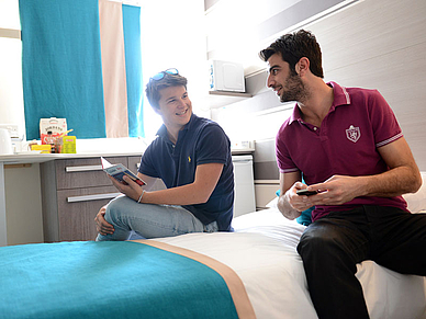 Moderne Schulresidenz direkt in den oberen Etagen der Sprachschule. Unterkunft im Einzel- oder Doppelzimmer mit geteiltem Bad. 1/2 Doppelzimmer ist für Alleinreisende buchbar. Selbstverpflegung. Es gibt eine Gemeinschaftsküche. Gratis WLAN, Klimaanlage (gegen Bezahlung vor Ort). Des weiteren findet man in der Residenz einen Loungebereich und eine Waschküche (gegen Bezahlung vor Ort). Handtücher und Bettwäsche werden gestellt. Strandtücher sind mitzubringen. Mindestalter: 18 Jahre.