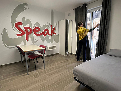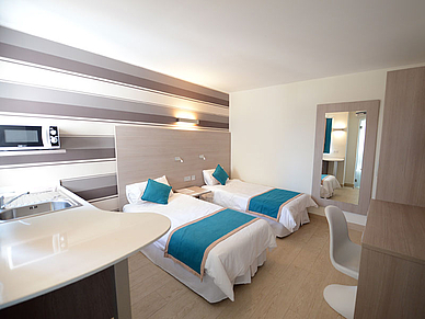 Modernes Shared Apartment in direkter Nachbarschaft zur Sprachschule. Die Shared Apartments bestehen aus 2 Doppelzimmer-Schlafzimmern, einer Gemeinschaftsküche und geteiltem Bad. 1/2 Doppelzimmer ist für Alleinreisende buchbar. WLAN vorhanden. Selbstverpflegung. Handtücher und Bettwäsche werden gestellt. 1x pro Woche Wäschewechsel. Strandtücher sind mitzubringen. Mindestalter: 18 Jahre.