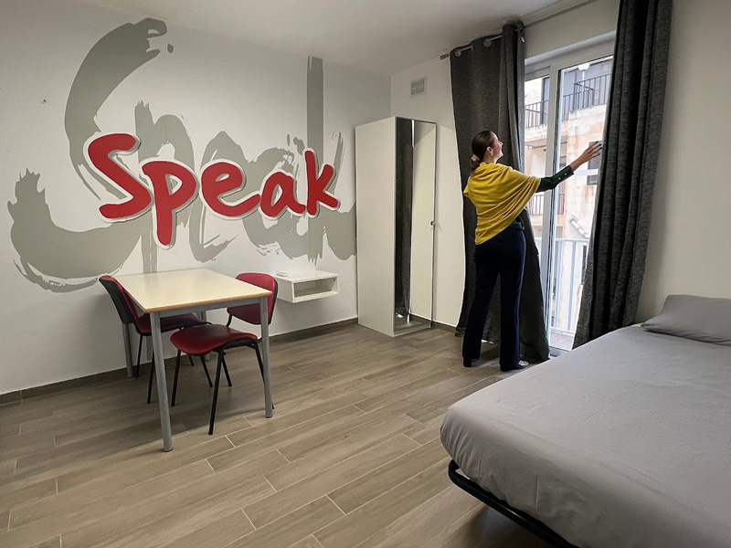 Unterkunft bei Privatgastgebern im Einzel- oder Doppelzimmer inklusive Halbpension. Bettwäsche und Handtücher werden gestellt. Strandtücher sind mitzubringen. Wäscheservice (1x pro Woche). WLAN auf Anfrage und gegen Gebühr. Alleinreisende müssen ein Einzelzimmer buchen. Die Entfernung zur Schule beträgt je nach Wohnlage und Saison ca. 10-25 Gehminuten oder bis zu 45 ÖPNV-Fahrminuten.
