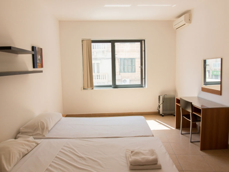 Neu gebaute Residenz, nahe der Universität Malta, ca. 30 Busminuten von der Sprachschule entfernt. Du wohnst im Einzelzimmer mit eigenem Bad bei Selbstverpflegung. Es gibt eine Gemeinschaftsküche sowie Wohnbereiche zur gemeinsamen Nutzung, einen Fitnessraum (Gebühr) und Swimming-Pool. Handtücher und Bettwäsche werden gestellt. Strandtücher sind mitzubringen. Waschmöglichkeit vorhanden (Gebühr). WLAN inklusive. Bei der Ankunft ist eine Kaution zu hinterlegen.