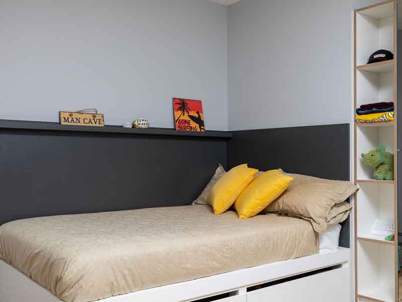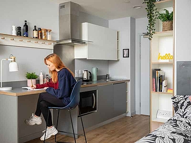 Du wohnst in der oben beschriebenen Residenz separat zu den Wohneinheiten in einem Studio zur Einzelbelegung mit eigenem Bad und Küchenzeile. Selbstverpflegung. Zugang zu den Gemeinschaftsbereichen der Residenz mit Lounge, Studierbereich, Fitnessraum, Spiel- und Multimediaraum. Bettwäsche wird gestellt, Handtücher sind mitzubringen. WLAN verfügbar. Waschmöglichkeit (Gebühr). Ca. 10-15 Gehminuten zur Sprachschule. Buchbar ab 18 Jahren. Es ist eine Kaution zu hinterlegen.