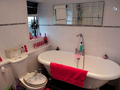 Wie oben beschrieben, im Einzelzimmer mit eigenem Bad.