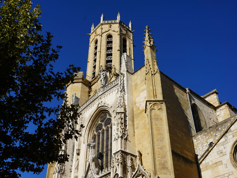 Zu den Sehenswürdigkeiten von Aix-en-Provence gehört der Cours Mirabeau, eine 1649 angelegte Prachtmeile, welche die Altstadt im Norden mit dem südlichen “Mazarin-Viertel” verbindet. Sehenswert sind das Hôtel de Caumont mit dem Konservatorium Darius-Milhaude, der “Place des Quatre Dauphins” sowie das Museum Paul Arbaud, mit einer schönen Sammlung provençalischer Fayencen. Die Kirche Saint-Jean-de-Malte (13. Jahrhundert) ist die älteste gotische Kirche der Provence.