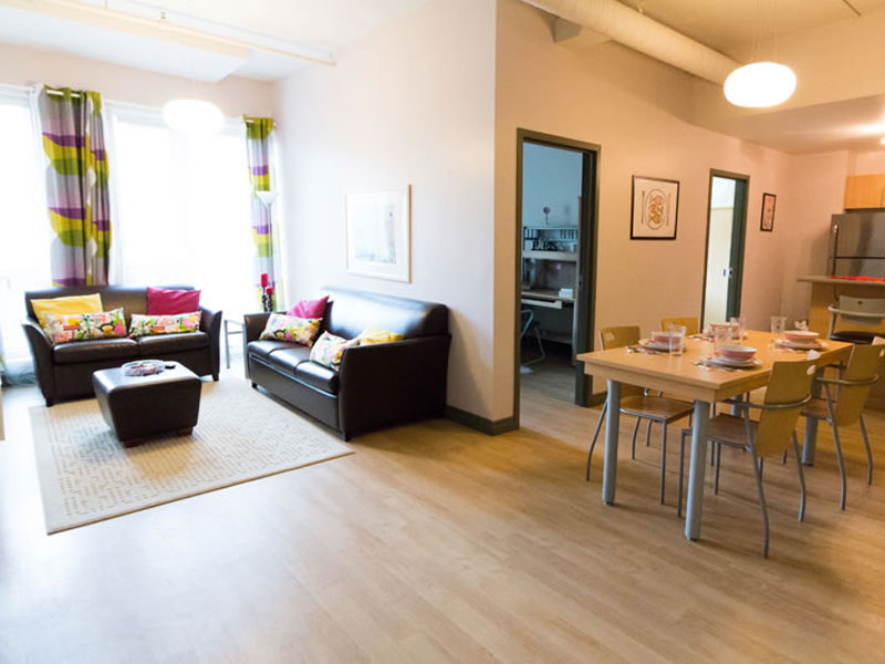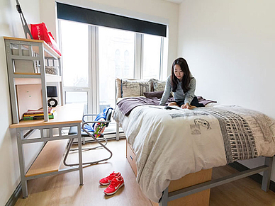 Gemeinsam mit 2-4 weiteren Teilnehmern in einem Apartments. Unterkunft im Einzelzimmer bei Selbstverpflegung. Küche, Wohnbereich und Badezimmer zur gemeinsamen Nutzung. Bettwäsche und Handtücher werden gestellt. Waschmöglichkeit vorhanden (Gebühr). WLAN inklusive. Im Apartmentgebäude gibt es weitere Gemeinschaftsbereiche, einen Fitnessraum, Games Room und ein Studierzimmer. Zur Schule ca. 15 Gehminuten. Buchbar ab 18 Jahren.