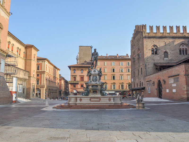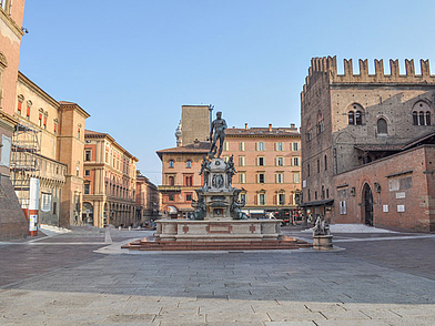 Architektonisch zeichnet sich die Stadt durch ihre eindrucksvollen Arkadengänge aus. Über rund 40 km erstrecken sich die kreuzgratgewölbten Bodengänge, mit denen man im 13. Jahrhundert dem akuten Wohnungsmangel aufgrund der in die Stadt strömenden Menschen Herr zu werden versuchte. Heute bieten die pittoresken Laubengänge, die sogenannten „Portici“, Schutz vor der Sonne und ein Überdach bei Regen – ein besonderer Pluspunkt während eines Sprachaufenthalts in Bologna. Zu den Hauptsehenswürdigkeiten der Stadt gehören die Piazza di Nettuno mit dem von Giambologna geschaffenen Neptunsbrunnen vor dem Palazzo Comunale und die angrenzende Piazza Maggiore, das Herz der Stadt, mit dem Palazzo del Re Enzo, dem Palazzo del Podestà, dem Palazzo dei Banchi und der monumentalen Kirche San Petronio. Ein Besuch dieser Plätze lässt sich ideal in einen abwechslungsreichen Nachmittag nach dem Sprachkurs oder im Rahmen einer Stadtführung während der Sprachreise integrieren. Wahrzeichen der Stadt sind die schiefen Türme „Asinelli“ und „Garisenda“, Überbleibsel der einst rund 200 Geschlechtertürme, die als sichtbare Zeichen der Macht verschiedener Adelsfamilien errichtet wurden. Wer während seines Sprachaufenthalts den Aufstieg auf den Torre Asinelli wagt, wird mit einem weiten Blick über die roten Dächer Bolognas bis hin zur Bergkette des Apennins belohnt. Nicht ohne Grund war Bologna im Jahr 2000 Kulturhauptstadt Europas – ein Titel, der bis heute spürbar ist und die Stadt zu einem idealen Ziel für einen Sprachaufenthalt oder den Besuch einer Sprachschule macht.