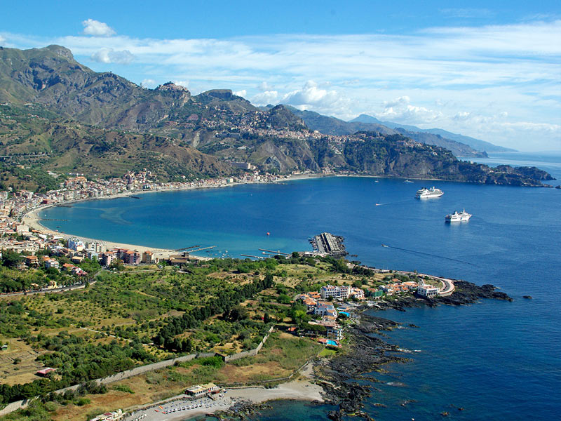 - Grandioser Blick auf den Vulkan Ätna, Golf von Naxos und Isola Bella