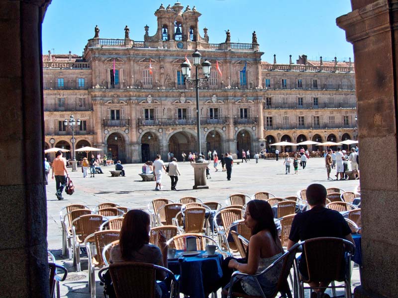 Die Universitätsstadt hat zwei Kathedralen aus dem 12. und dem 16. Jahrhundert, die jedoch einen gemeinsamen Gebäudekomplex bilden. Die Plaza Mayor, auf der früher auch Stierkämpfe abgehalten wurden, gilt als Spaniens schönster Platz. Unsere exzellente Sprachschule in Salamanca liegt nur 6 Gehmniuten von der Plaza Mayor entfernt in zentraler Lage. Bekannt ist auch die „Casa de las conchas“, ein im Plateresco-Stil erbauter Stadtpalast.