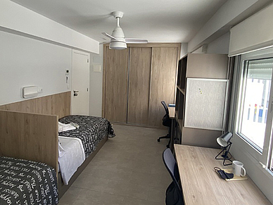 Unterkunft mit weiteren Studenten der Schule, in der Hochsaison auch mit Spaniern. Apartments mit 3-4 Schlafzimmern und jeweils 1-2 Bädern. Im Einzel- oder mit dem Reisepartner oder einem weiteren Teilnehmer im Doppelzimmer. Selbstverpflegung. Bad und Küche werden geteilt. Bettwäsche wird gestellt, Handtücher sind mitzubringen. Gratis WLAN. Wohnbereich mit TV (wird 2-wöchentlich gereinigt). Waschmaschine vorhanden. Alleinreisende können Doppelzimmer buchen. Die Fahrzeit zur Schule beträgt ca. 20 Min. mit ÖPNV.