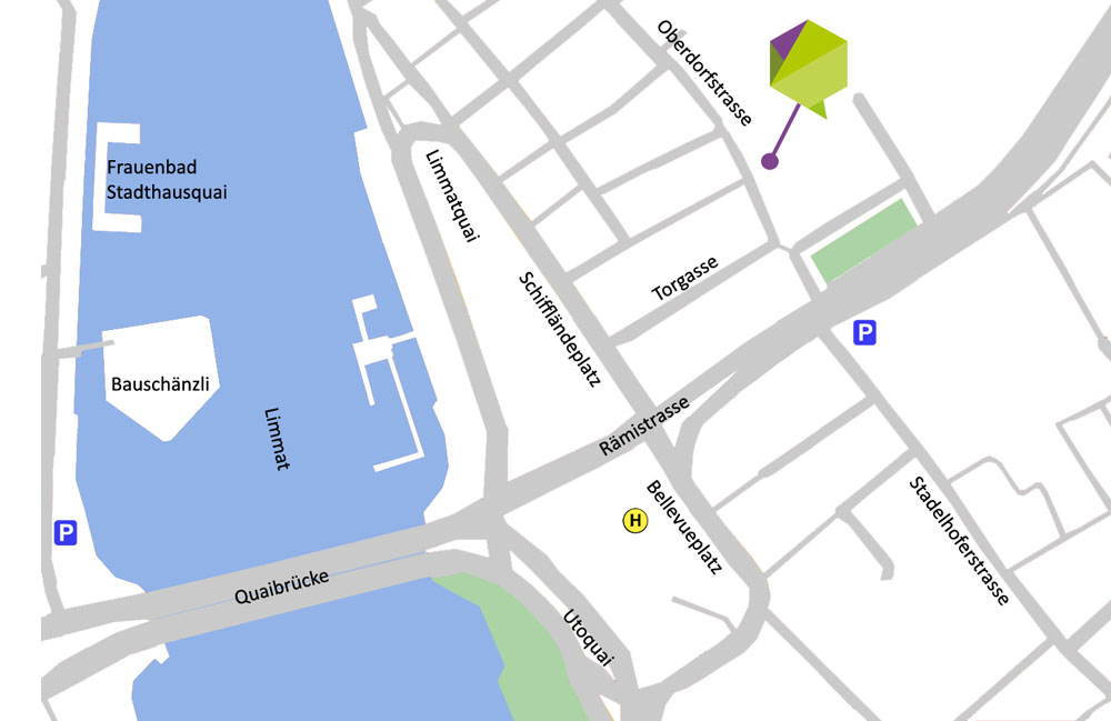 - entweder gleich zu Fuss vom Bahnhof, Sie erreichen uns in zirka 10 Minuten