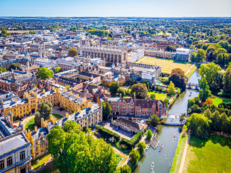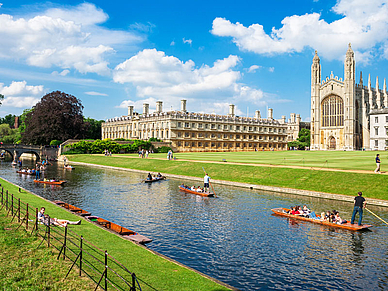 Das King´s College, die Universitätsbibliothek, das Trinity College sind ebenso sehenswert wie das Fitzwilliam-Museum, das Museum of Archaeology and Anthropology oder das Cambridge & County Folk Museum. Auch der Botanische Garten der Universität ist sehr beeindruckend. Im Cambridge University Press Bookshop werden seit sage und schreibe 1581 Bücher verkauft! Legendär sind die Seufzerbrücke und die Mathematikbrücke über den Fluss Cam. Auf dem Cam ist eine Punting Tour ebenso ein Highlight!