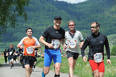 Wir haben uns für den Startort Olten (Schweiz) im Kanton Solothurn entschieden. Die Stimmung war hervorragend und es waren ca. 1.800 Läufer/innen am Start. Wir haben bereits vor dem Lauf vereinbart, dass wir wenn möglich 27 Kilometer erreichen möchten bevor uns das Catcher-Car überholt. Dies bedeutete dass wir mit einer relativ Pace von 5 Min./KM im Schnitt laufen müssen. Wir hatten somit zum Glück auch ausreichend Gelegenheiten um Fotos von der wunderschönen Laufstrecke, mit Blick auf die Jurakette entlang der Aare, zu machen.