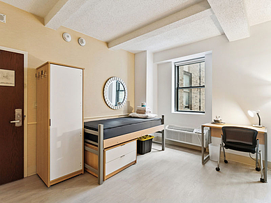 Résidence centrale à Manhattan, près de Grand Central Station. L'école est à 20 minutes à pied. Tu logeras en chambre individuelle avec salle de bain privée. Tu peux te débrouiller seul. Dans le bâtiment, il y a une cuisine commune, un salon, une salle à manger, une salle de fitness, une salle multimédia et de jeux. Le WLAN est inclus. Les serviettes et les draps sont fournis. Possibilité de laver le linge (payant). Réservable à partir de 18 ans.