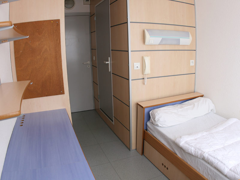 Hébergement en chambre individuelle simple avec salle de bain, repas non compris, cuisine commune disponible. La vaisselle, les ustensiles de cuisine et les serviettes doivent être apportés, les draps sont fournis. Accès à Internet (câble LAN, également possibilité de location contre paiement). Durée du trajet jusqu'à l'école : env. 20 minutes. Réservable uniquement en été.
