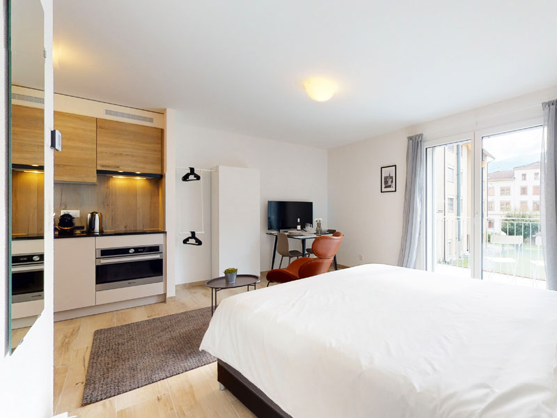 Résidence étudiante ultramoderne à Aigle, à réserver en chambre individuelle, sans repas, avec salle de bain/douche privée, une cuisine entièrement équipée et une télévision. L'appartement est situé à 20 minutes en transports publics de l'école, au centre de la belle ville d'Aigle. Les draps et les serviettes sont fournis. La résidence dispose d'une connexion WLAN gratuite et d'une buanderie. Age minimum : 16 ans